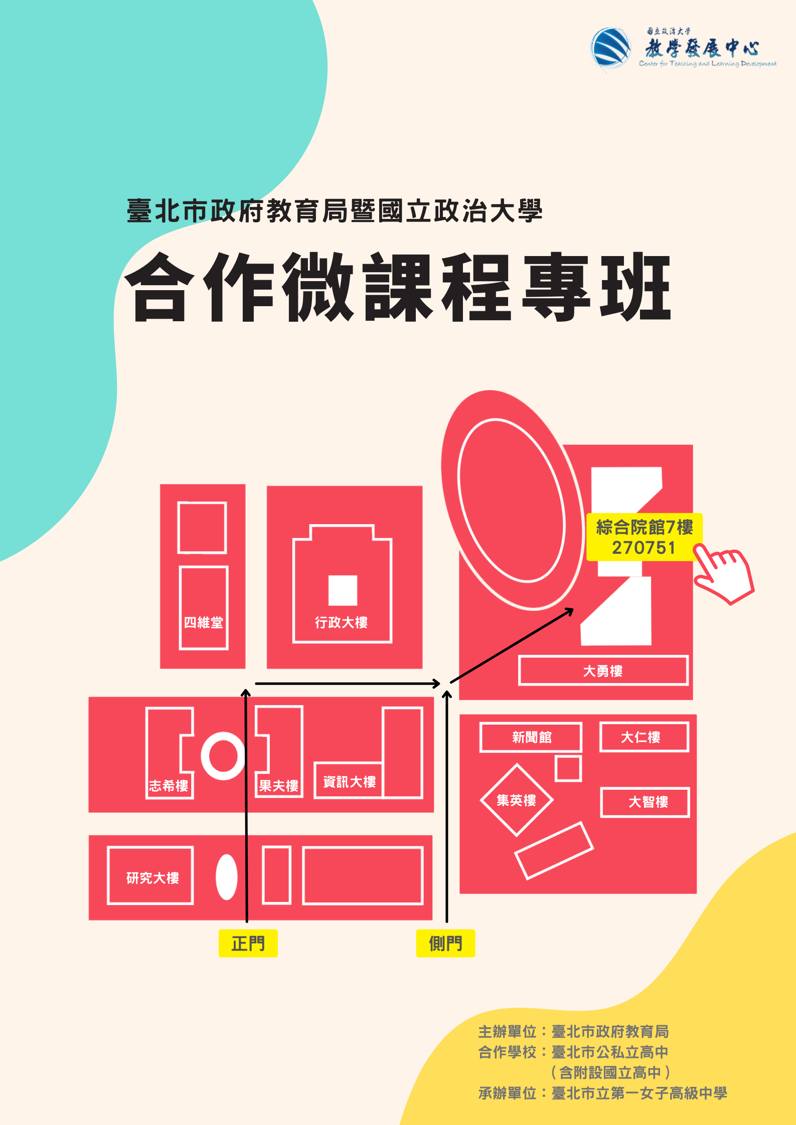 2. 上課地點:國立政治大學綜合院館南棟270751教室